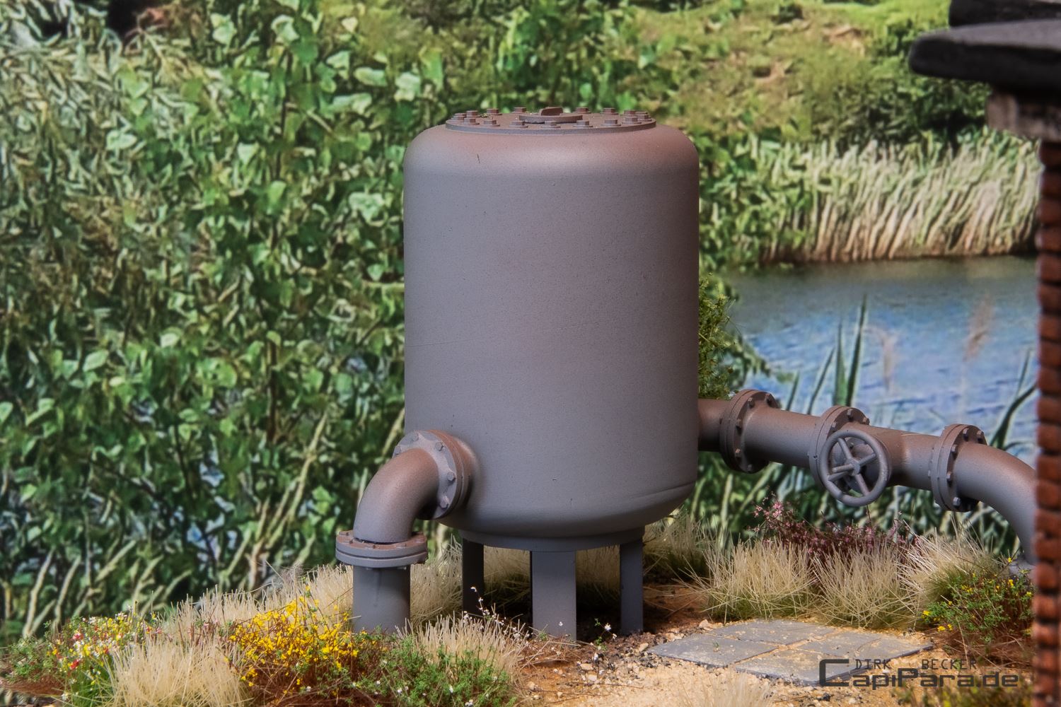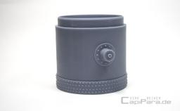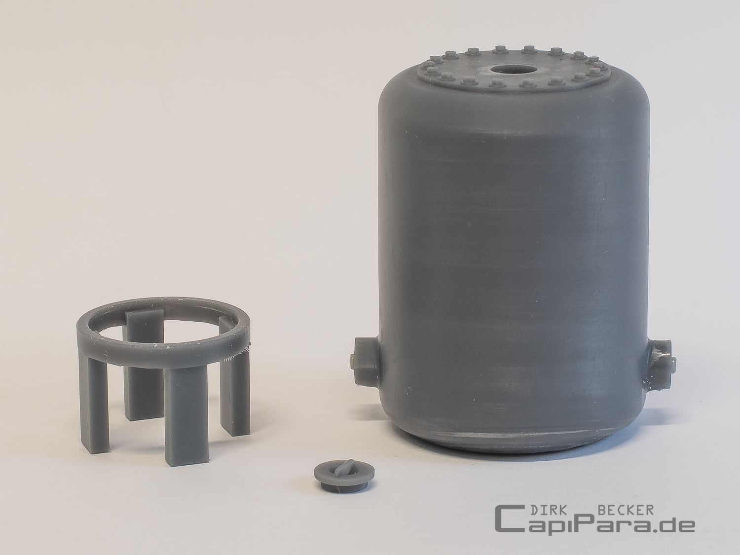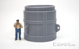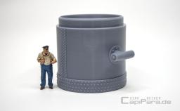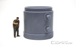Stehender Druckluftkessel - Speichermedium für jede Druckluftanlage in Werkstätten oder als Filter für Flüssigkeiten aller Art und ähnlichem. Zwei seitliche Anschlüsse für das Rohrsystem 280 (8,75 mm).