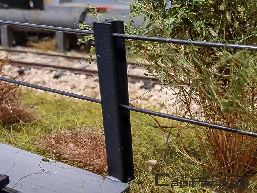 #2407 - Geländer-Pfeiler aus Schienenprofil, zwei Bohrungen, Länge über Gelände = 34 mm