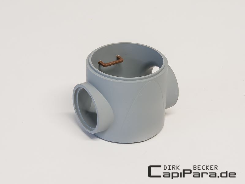 #2422 - Kanalisations-Bodemelement, zwei Abgänge, Länge = 46,6 mm, Breite = 39,7 mm, Höhe = 35,4 mm